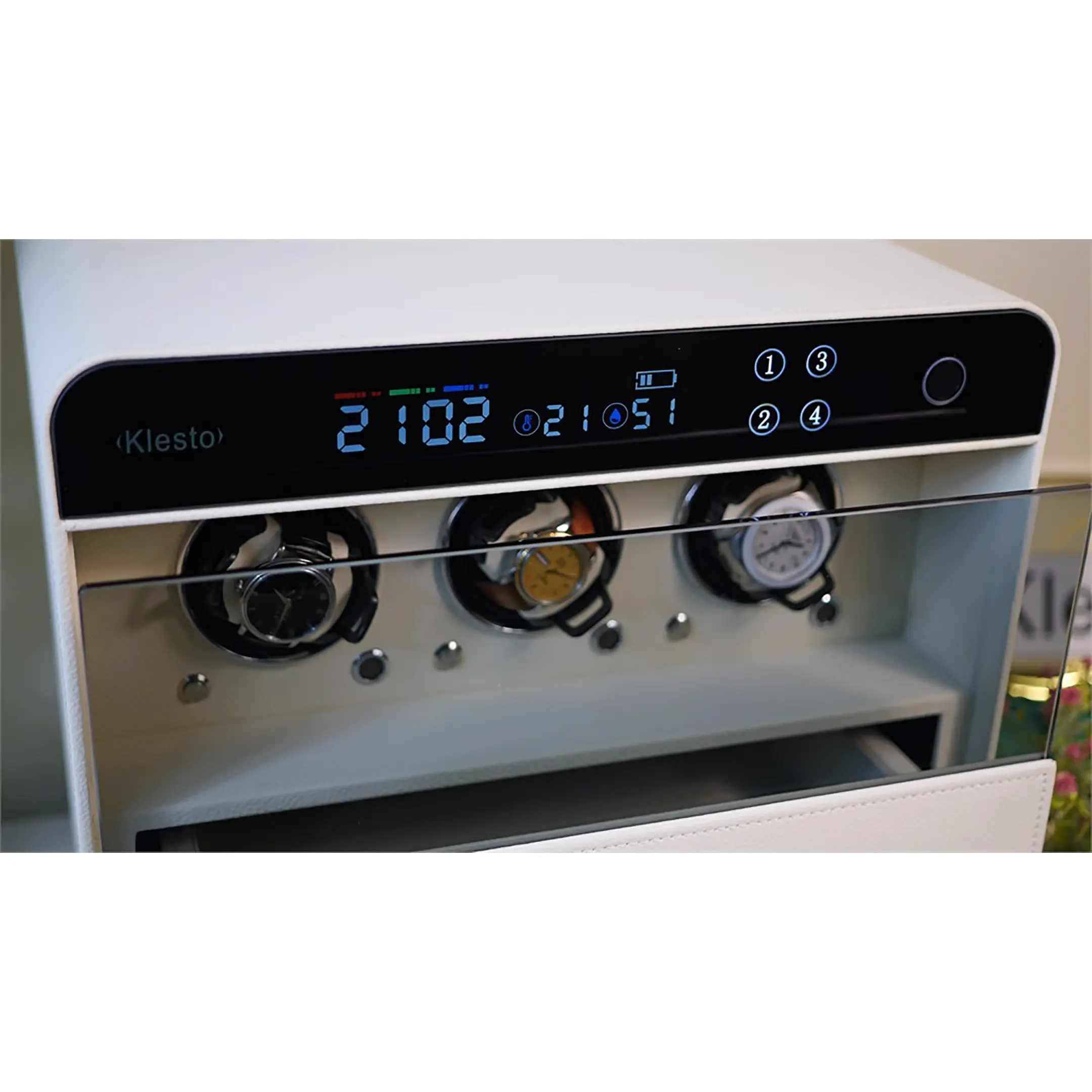 Безупречная витрина: Элегантный дизайн и мягкая светодиодная подсветка, которая бережно подсвечивает ваши часы, не нагревая воздух внутри. Ваша коллекция становится элементом интерьера, достойным восхищения.