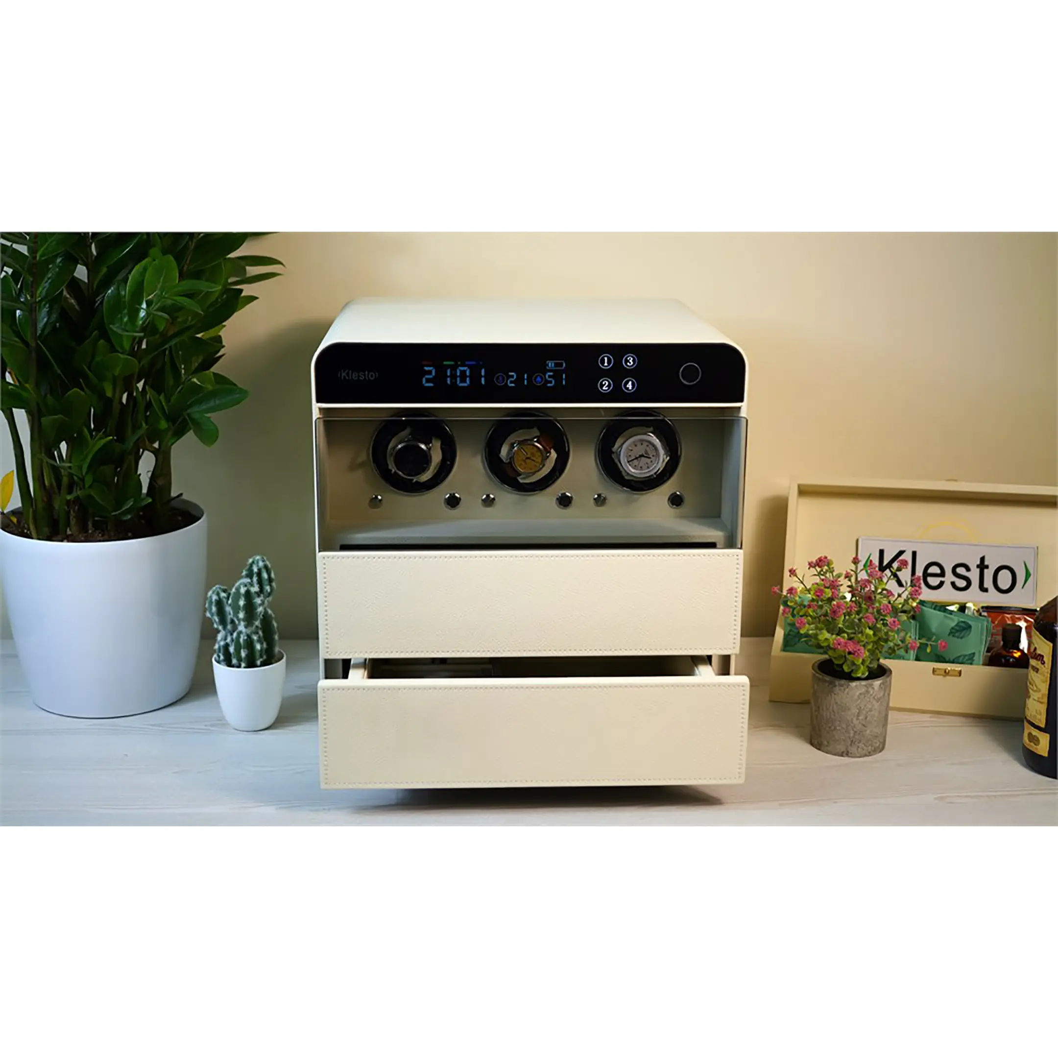 Индивидуальный подход: Вращающиеся подушечки-держатели с регулируемым размером, которые надежно фиксируют часы любого диаметра (от классических до крупных моделей) и типа браслета. Программируемые режимы подзавода (обороты в день, направление вращения) для идеального обслуживания любой модели.