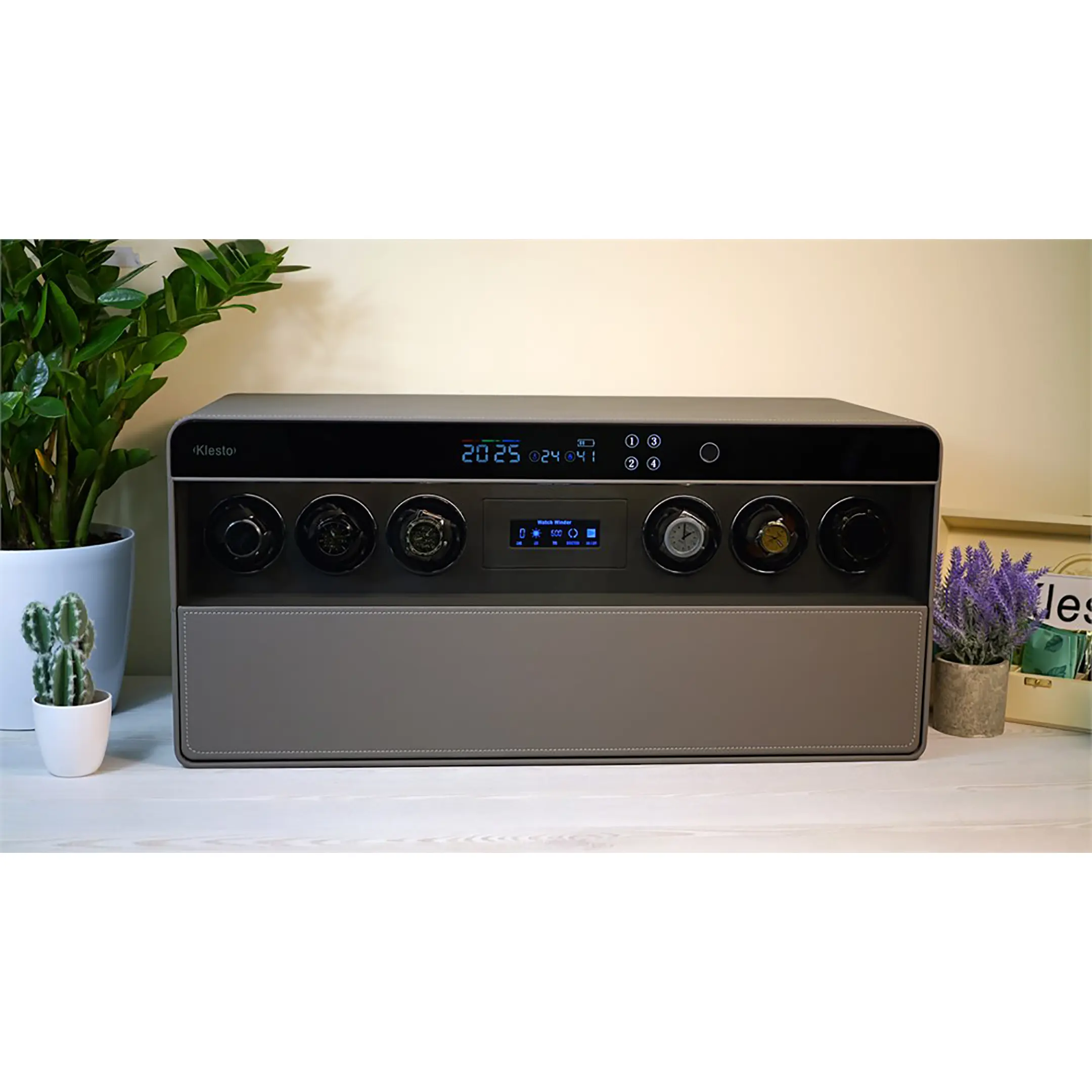 Индивидуальный подход: Вращающиеся подушечки-держатели с регулируемым размером, которые надежно фиксируют часы любого диаметра (от классических до крупных моделей) и типа браслета. Программируемые режимы подзавода (обороты в день, направление вращения) для идеального обслуживания любой модели.