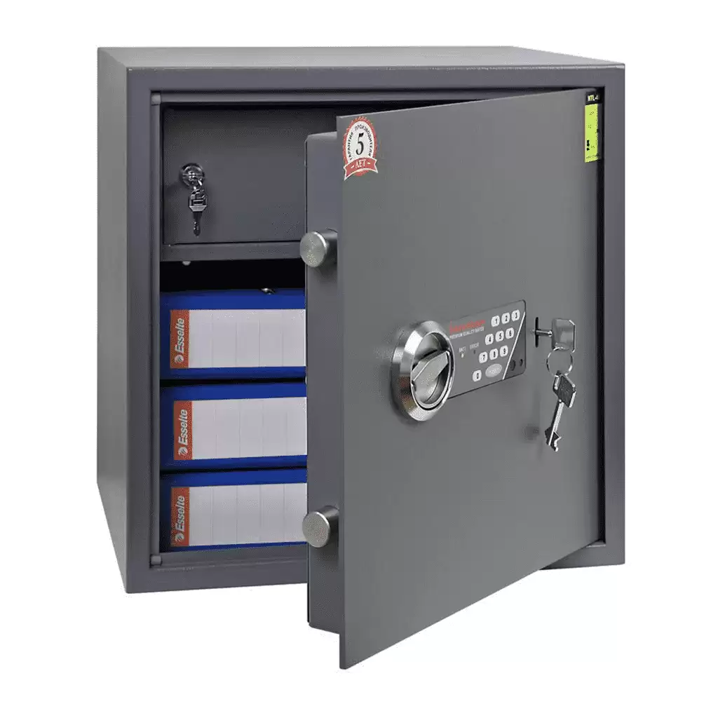 наличие аварийного ключа в сейфе позволяет открыть дверь в случае потери кода и перепрограммировать электронный замок;