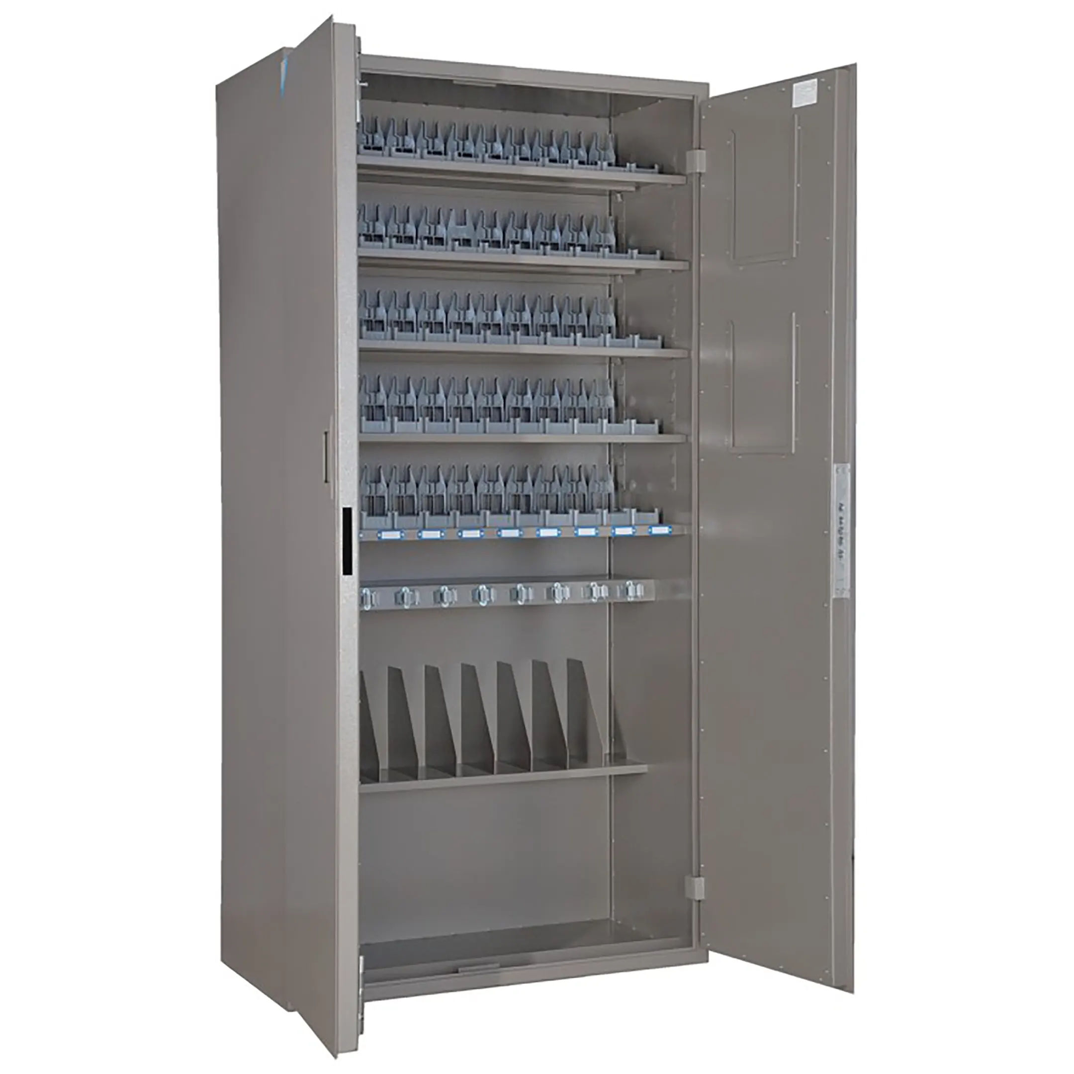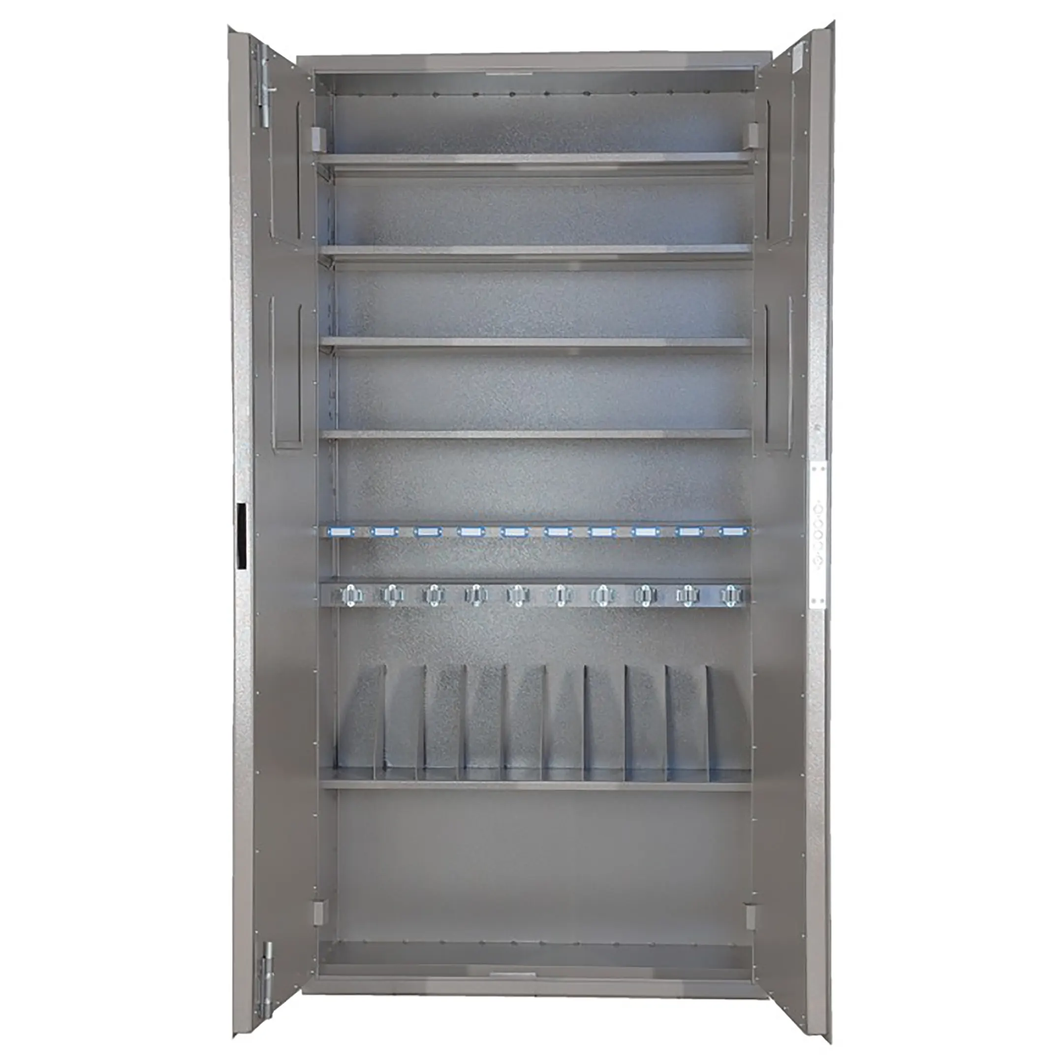Сейф оружейный ОШ-10АКМ-65ПУ без подставок — армейский сейфовый шкаф для хранения оружейного арсенала из 10 автоматов и 65 пистолетов, патронов и магазинов.