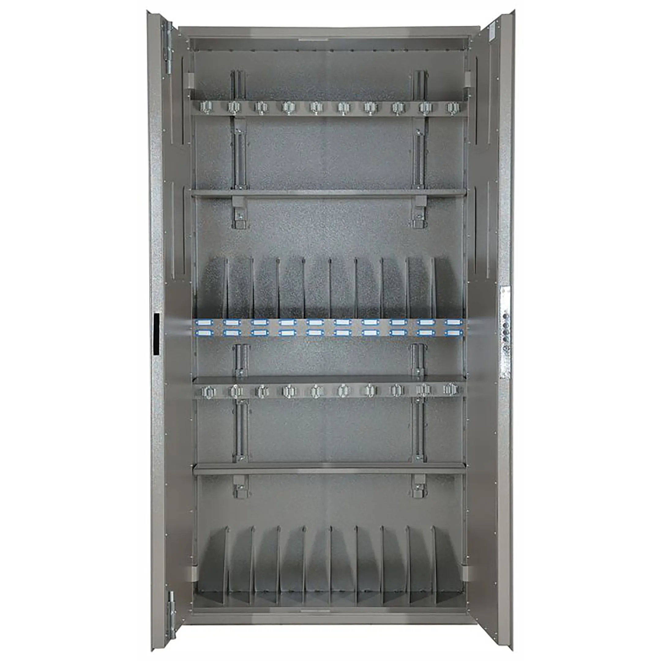 Сейф оружейный универсальный ОШ-20 УН на 20 стволов предназначен для хранения любых типов огнестрельного оружия и оборудован двумя регулируемыми полками.