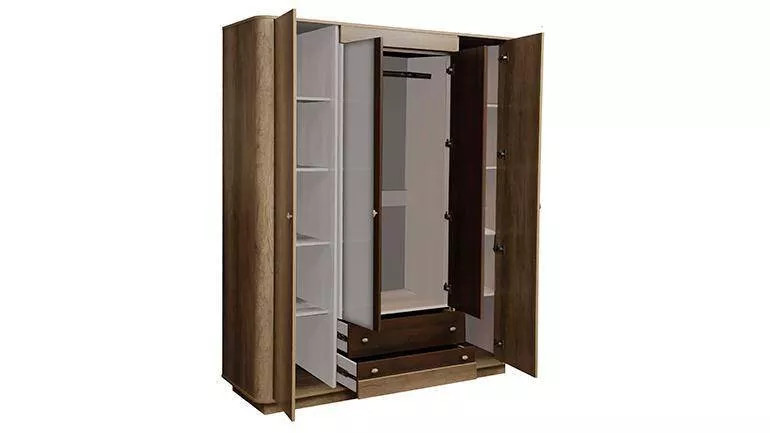 Большой вместительный шкаф с зеркалами из серии Фантазия. Шкаф оснащен полками, штангой для одежды и удобными выдвижными ящиками на шариковых направляющих.