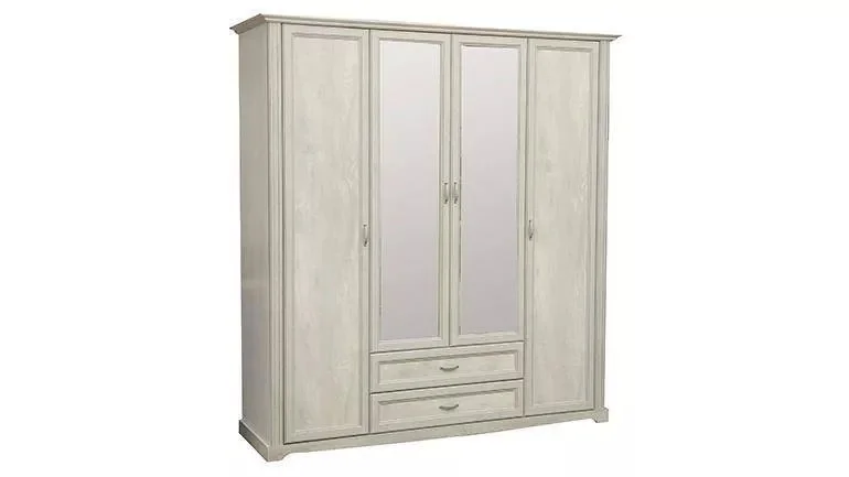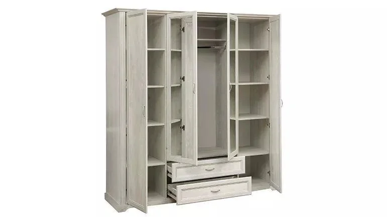 Большой и вместительный шкаф для одежды имеет все необходимое для удобного хранения одежды, белья и аксессуаров. Средние дверцы шкафа с зеркалами.
