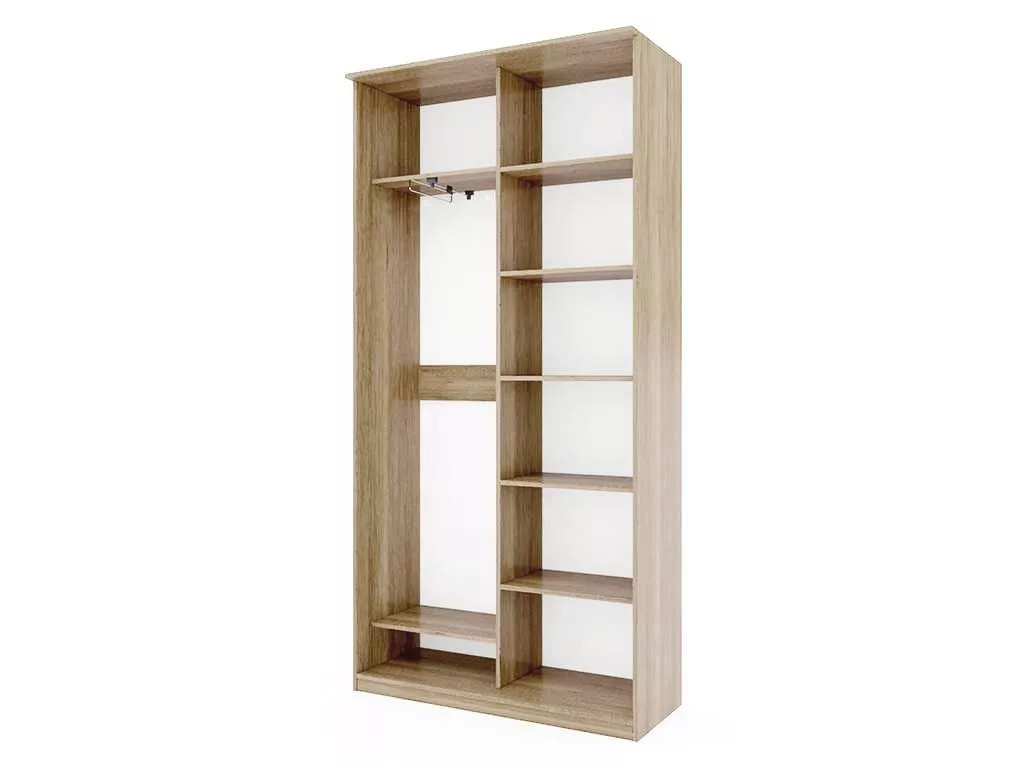 Шкаф оборудован двумя дверцами с фотопечатью, состоит из двух секций, в одной из которых 6 полок, а в другой 2 полки и одна вешалка для плечиков с одеждой.