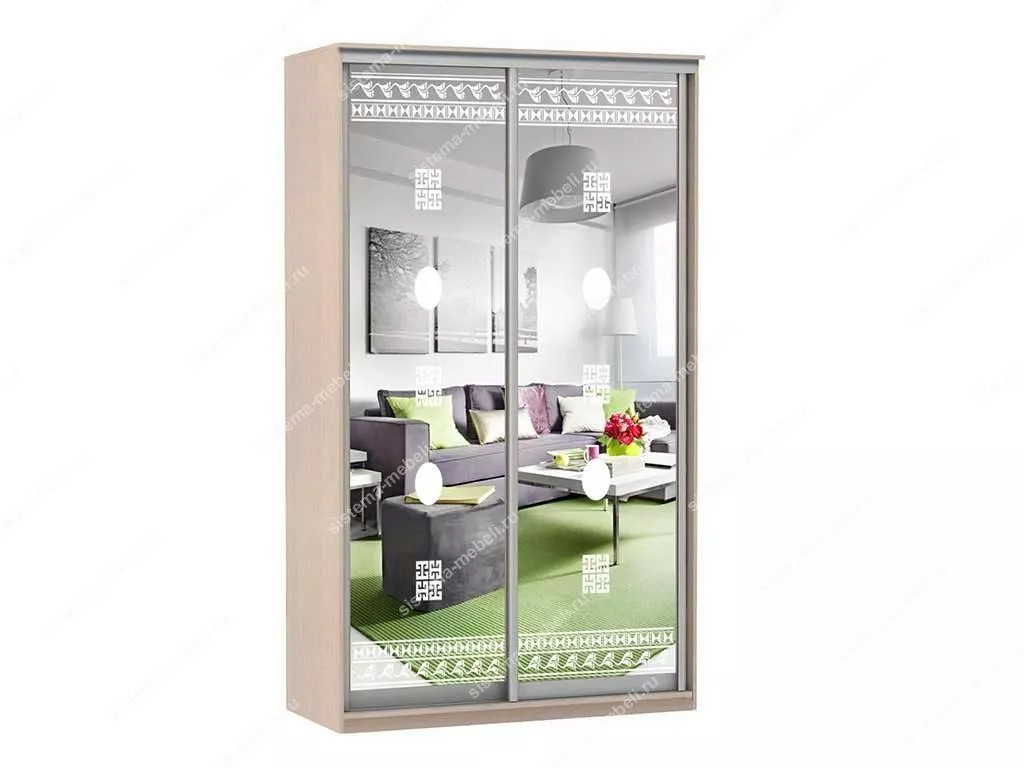 Шкаф купе Модерн 1190х450 2-х дверный 2-х секционный зеркальный с пескоструем №2 ясень — идеально впишется в Ваш интерьер.