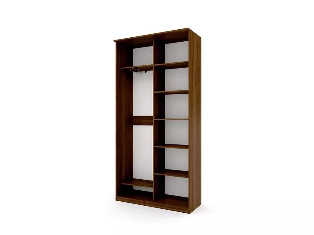 Шкаф оборудован одной глухой дверцей и одной с зеркалом, состоит из двух секций, в одной из которых 6 полок, а в другой 2 полки и одна вешалка для плечиков с одеждой.