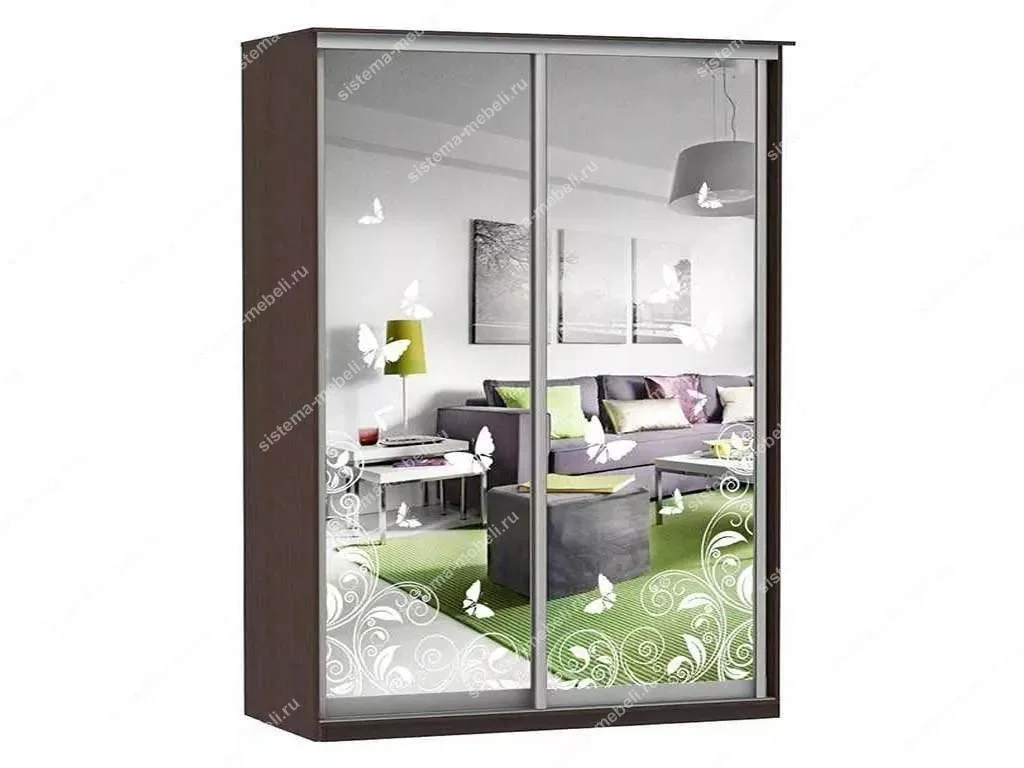 Шкаф купе Модерн 1490х600 2-х дверный 2-х секционный зеркальный с пескоструем №4 венге — идеально впишется в Ваш интерьер.