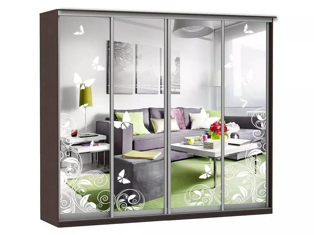 Шкаф купе Модерн 2362х450 4-х дверный 4-х секционный зеркальный с пескоструем №4 венге — это удобное и практичное решение для Вашей квартиры.