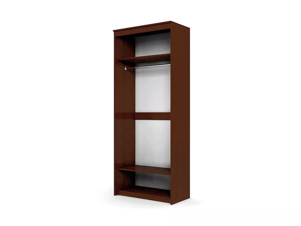 Шкаф оборудован двумя дверцами с фотопечатью, двумя полками и вешалкой для плечиков с одеждой.