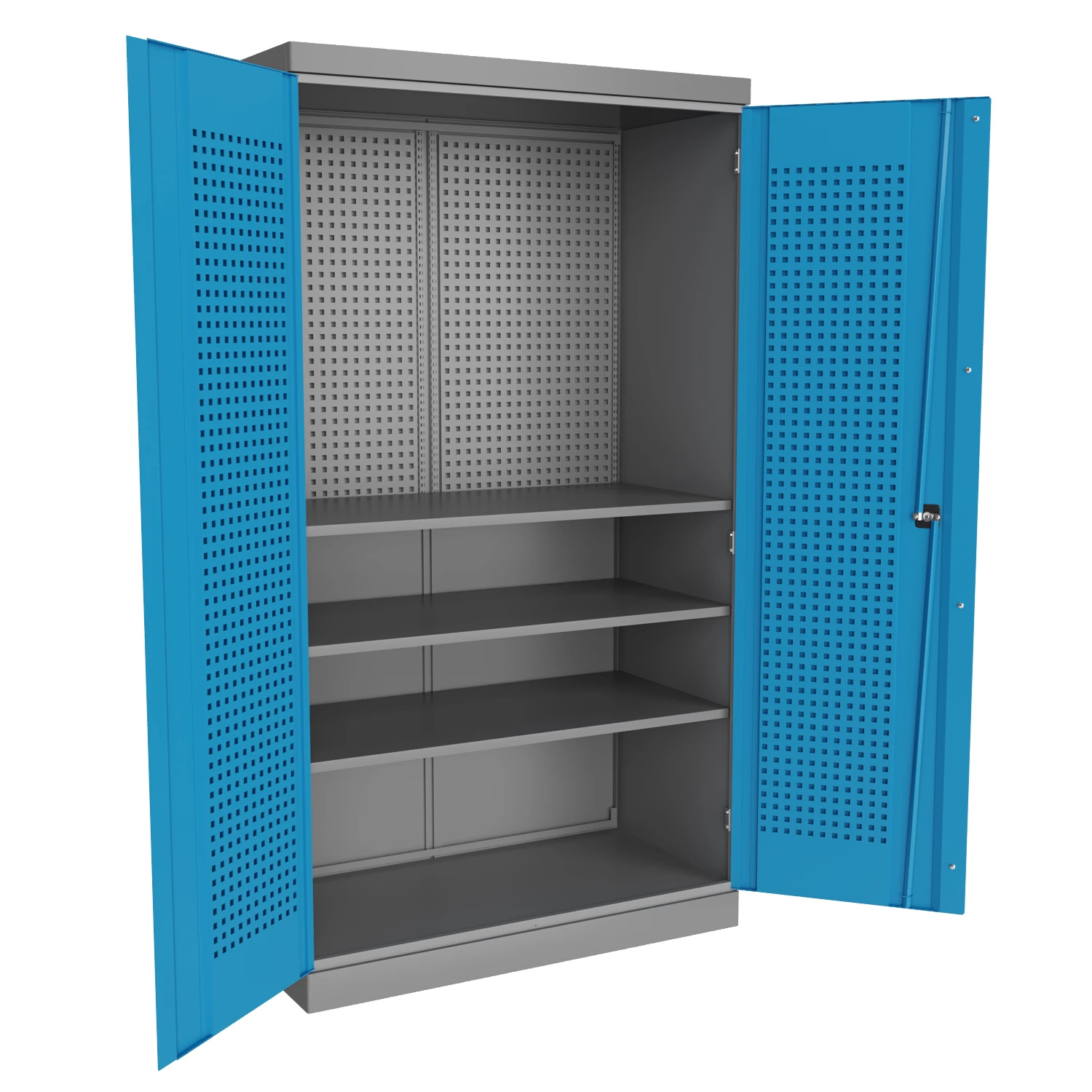 Шкаф инструментальный серии Technic предназначен для хранения оснастки, приспособлений и инструмента на рабочих местах в мастерских, цехах и других производственных зонах. Шкаф изготовлен из листовой стали и обеспечивает надежное запирание дверей ригельной системой.