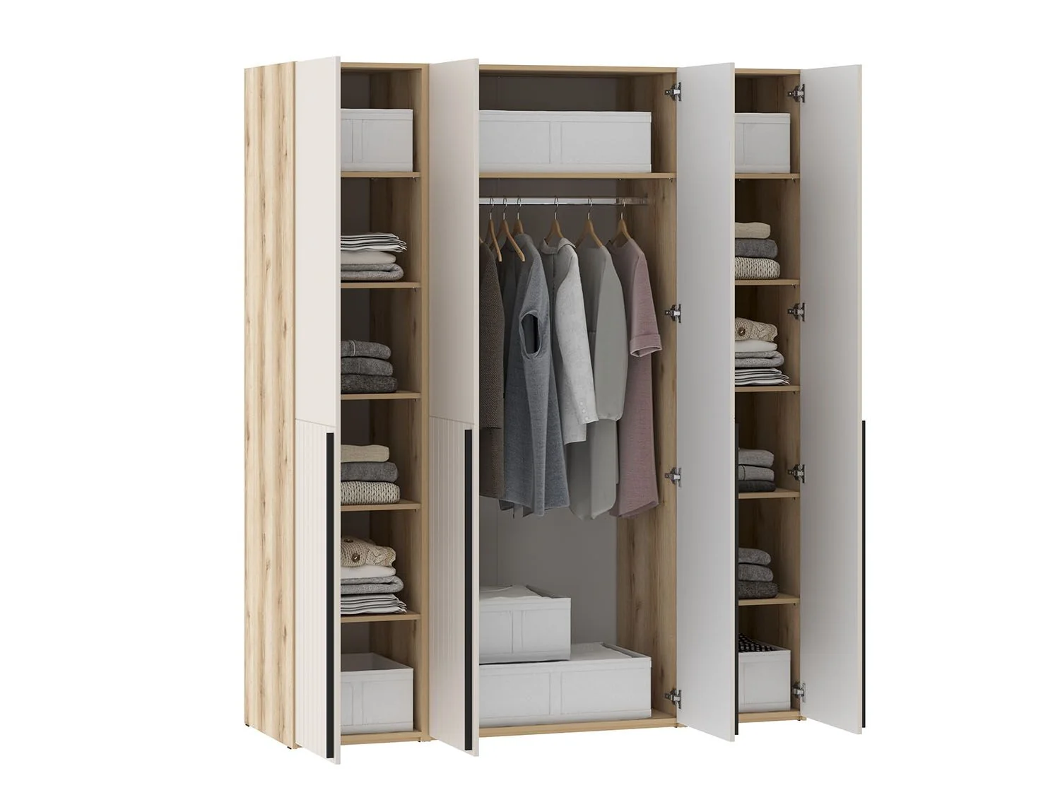 Шкафы Арден 200.2-полки-200.04-200.02-полки Дуб Делано / Сантьяго софт создадут вместительное и функциональное место для хранения одежды и вещей.