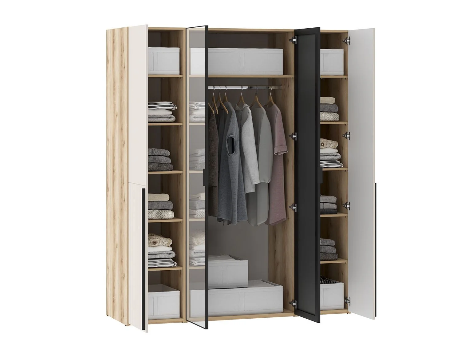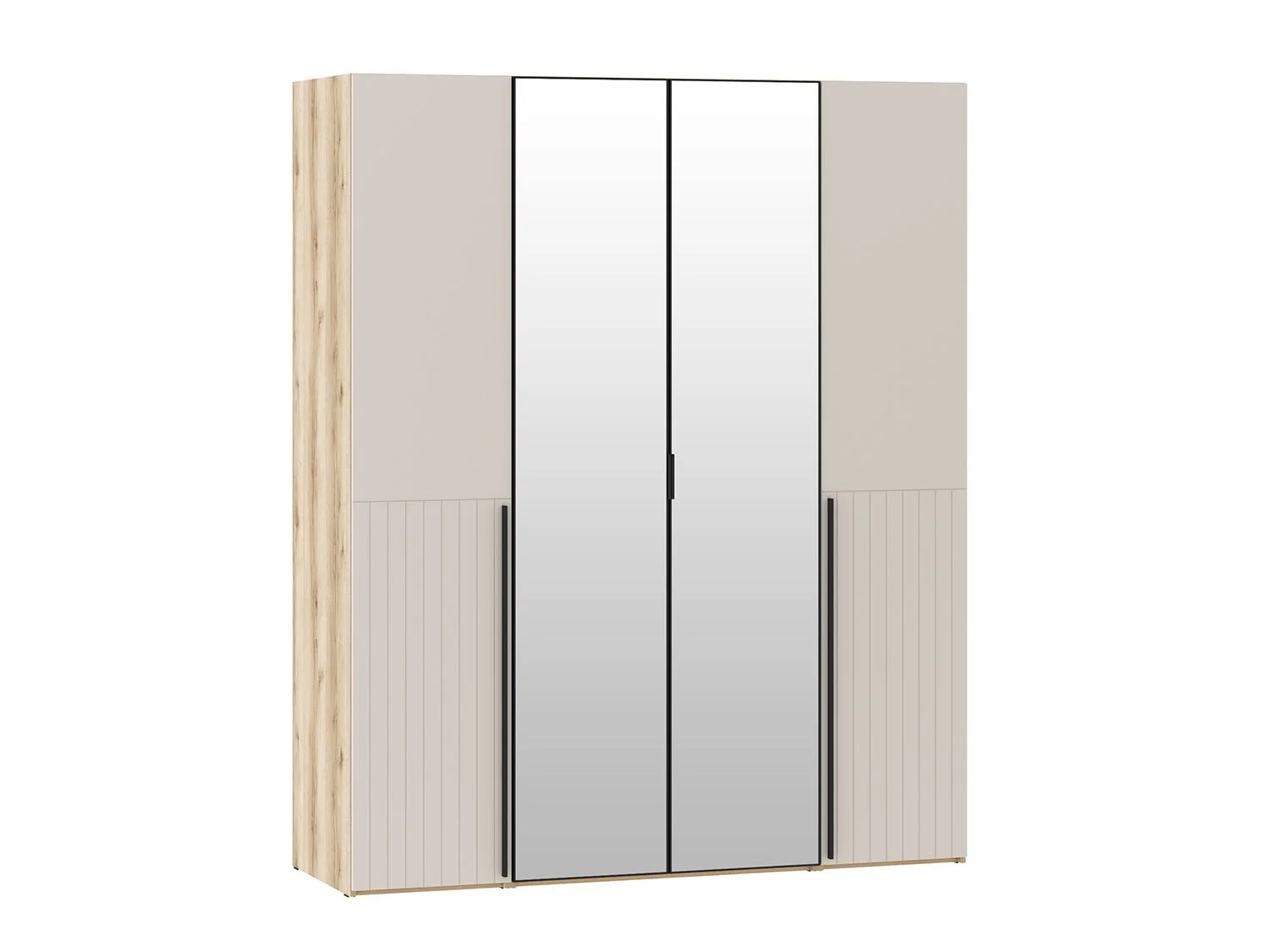 Шкафы Арден 200.2-полки-200.4 зеркало-200.2-полки Дуб Делано / Сантьяго софт создадут вместительное и функциональное место для хранения одежды и вещей.