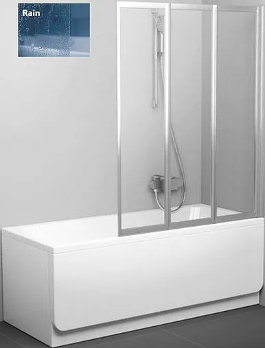 Штора состоит из трех подвижных частей, которые складываются вовнутрь ванны. Штора подходит для ванны BeHappy и других прямоугольных ванн с ровным передним бортом или какой-либо классической прямоугольной ванны с ровным передним бортом. Стандартная высота шторы 1400 мм. Штора для ванны VS3 100 предназначена для ванны BeHappy II 150 / 160, VS3 115 — BeHappy II 170. Штора для ванны VS3 100 в сложенном виде имеет ширину 340 мм, VS3 115 — 392 мм, а VS3 130 — 444 мм. Повернув VS3 на 180°, получите Л/П варианты входа.