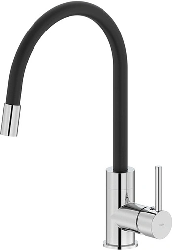 Смеситель для кухни с гибким силиконовым изливом позволяет выполнять рутинные задачи на новом уровне комфорта: с гибким изливом легко промывать овощи и фрукты, наполнять крупногабаритную посуду, мыть мойку. Внутренний шланг из нержавеющей стали с особой системой соединения звеньев придает изливу гибкость и прочность. Излив будет держать свою форму, не деформируясь со временем. Сочетание хромированного покрытия корпуса и матовых черных деталей делает смеситель стильным и оригинальным.