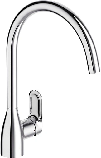 При выборе смесителя для кухни обратите внимание на требуемую подводку (в данном случае — гибкая), а так же на то, чтобы цвет смесителя (хром), поверхность (глянцевая) и форма (круглая) вписались в дизайн помещения и не усложнили сам процесс подключения смесителя к коммуникациям. Кроме этого, имеет смысл учесть высоту и длину излива, а так же число отверстий для монтажа, чтобы избежать возврата товара.