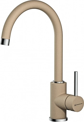При выборе смесителя для кухни обратите внимание на требуемую подводку (в данном случае — гибкая), а так же на то, чтобы цвет смесителя (бежевый), поверхность (матовая) и форма (округлая) вписались в дизайн помещения и не усложнили сам процесс подключения смесителя к коммуникациям. Кроме этого, имеет смысл учесть высоту и длину излива, а так же число отверстий для монтажа, чтобы избежать возврата товара.