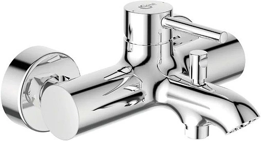 CERALINE Настенный смеситель для ванны/душа, монтаж на стандартных эксцентриках (в комплекте: эксцентрики, металлические отражатели, уплотнительные прокладки), аэратор Perlator, керамический картридж 35 мм с функцией HWTC, с функцией CLICK, металлическая рукоятка с индикаторами горячей / холодной воды, автоматическое переключение ванна/душ, обратный клапан