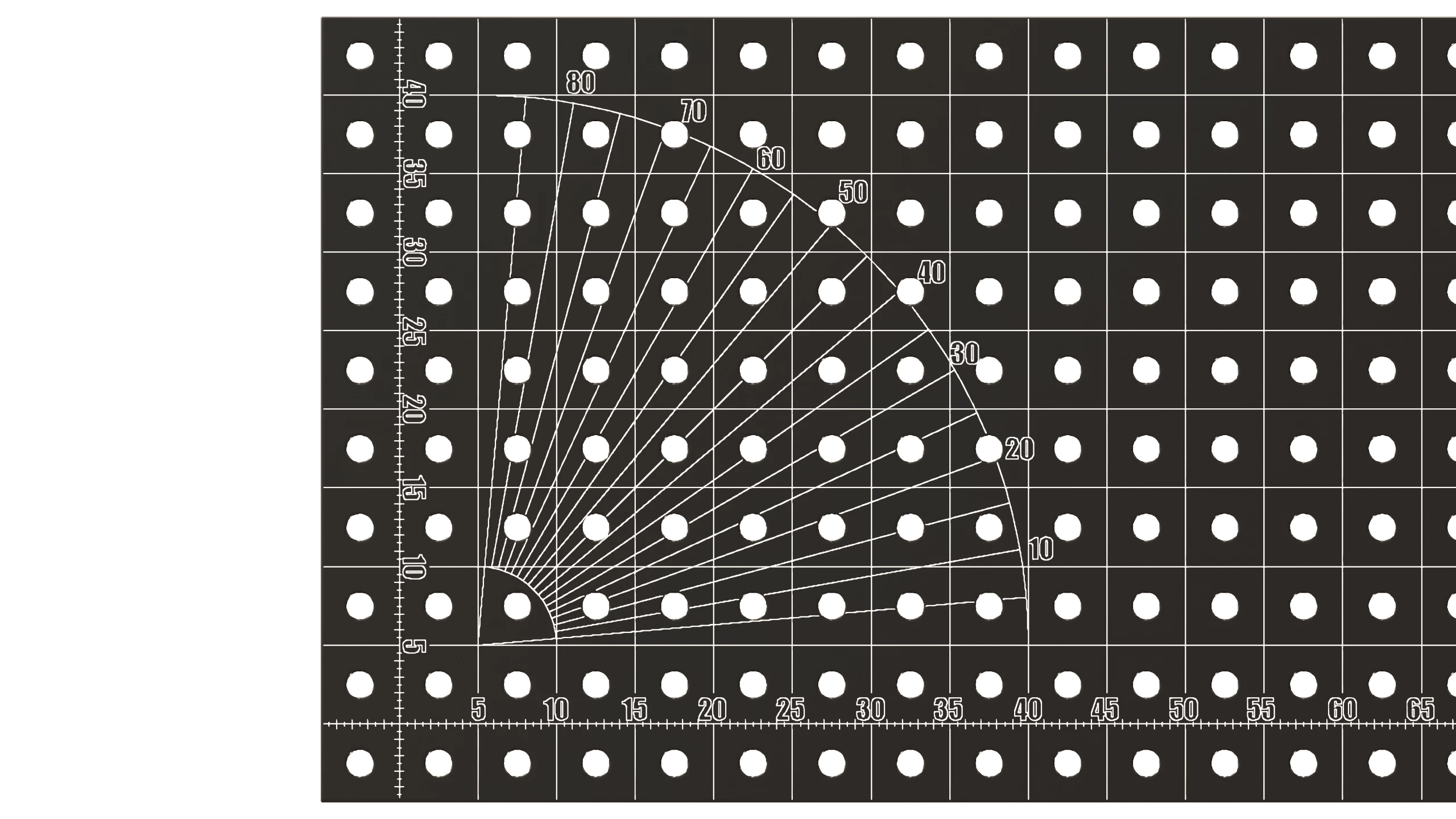 Координатно-расположенные монтажные отверстия диаметром 16 мм и шагом 50 мм, а также координатная сетка с шагом 50 мм, делают столешницу универсальной и удобной в использовании.