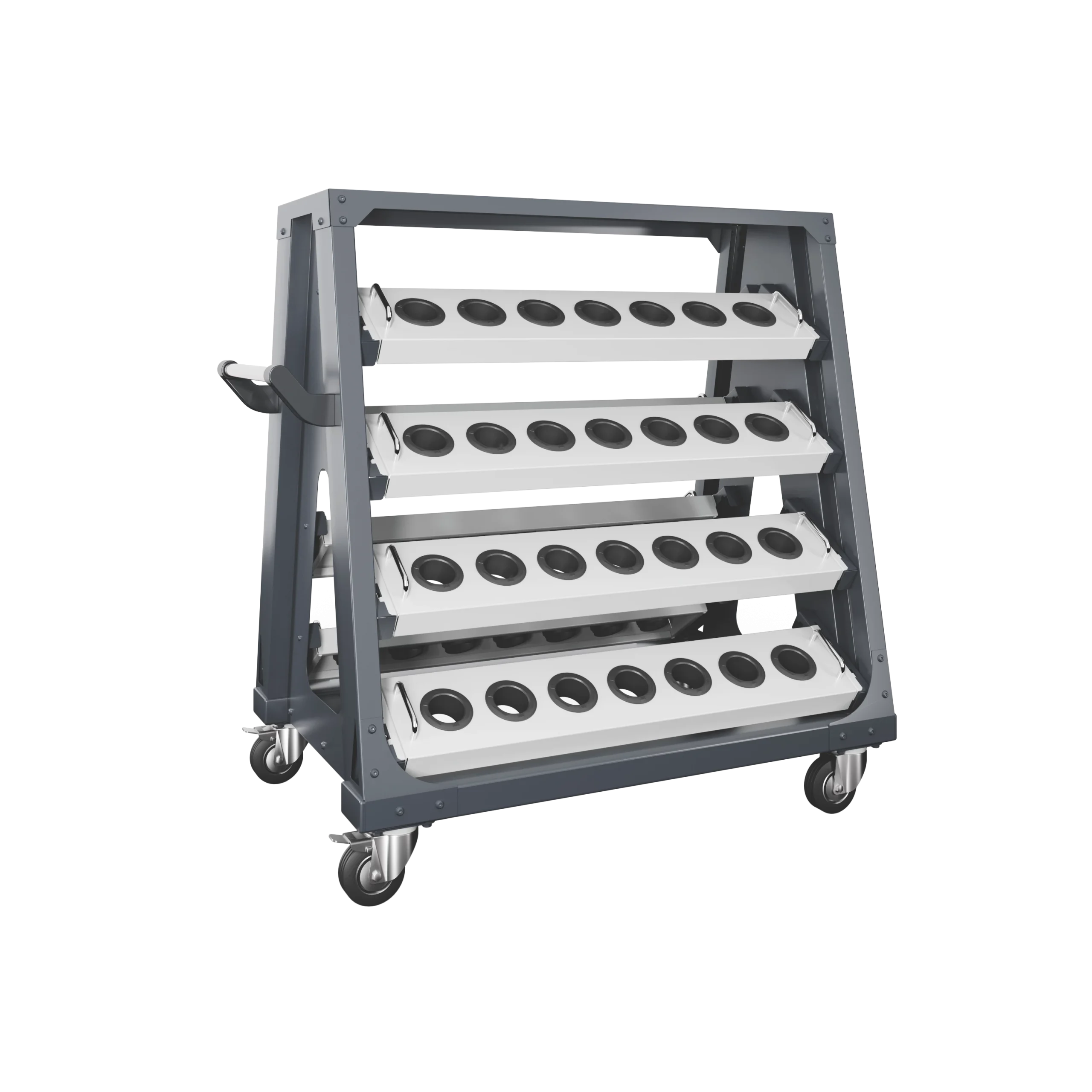 Тележка для хранения станочной оснастки, приспособлений и инструмента в мастерских, цехах и других производственных зонах.