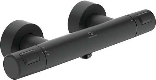 Ceratherm T25 Настенный термостатический смеситель для душа, монтаж на стандартных эксцентриках, термостатический картридж IS, новая технология, затворы на керамических дисках G1/2 180, технология «Cool body» («Холодный корпус»), пластиковые рукоятки с ограничителями температуры (40oC) и потока воды (50%), встроенный обратный клапан
