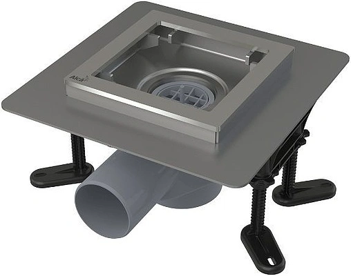 СЛИВНОЙ ТРАП ИЗ НЕРЖАВЕЮЩЕЙ СТАЛИ 130×130 ММ БОКОВОЙ СТОК, БЕЗ PЕШЕТКИ, ГИДРОЗАТВОР МОКРЫЙ