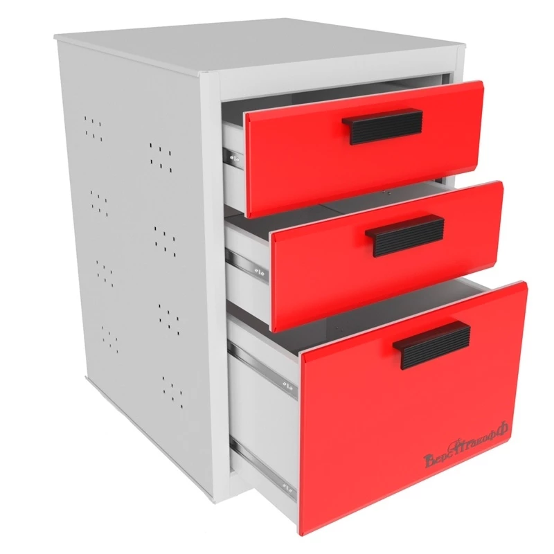 2 малых выдвижных ящика с внутренними размерами (ВхШхГ) 135х450х545мм., 1 большой выдвижной ящик с внутренними размерами (ВхШхГ) 310х450х545мм. Ножки в комплект не входят.