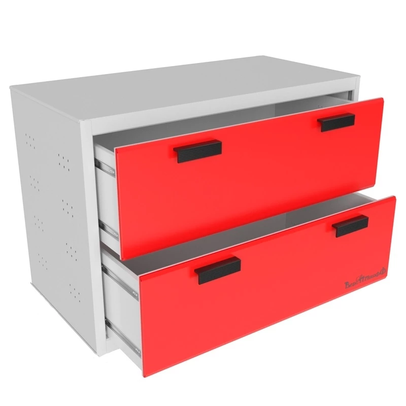 2 больших выдвижных ящика с внутренними размерами (ВхШхГ) 310х1040х545мм. Ножки в комплект не входят.