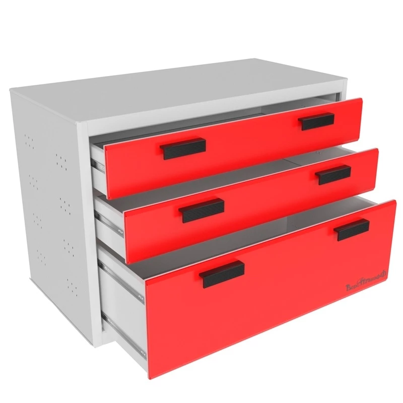 2 малых выдвижных ящика с внутренними размерами (ВхШхГ) 135х1040х545мм., 1 большой выдвижной ящик с внутренними размерами (ВхШхГ) 310х1040х545мм. Ножки в комплект не входят.