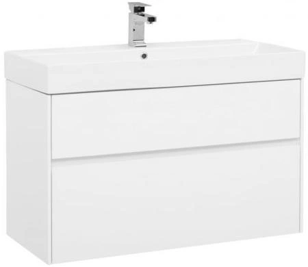 Тумба с раковиной Aquanet Бруклин 100 белого цвета предназначена для подвесной установки. Изделие отвечает тенденциям минимализма. Аскетизм четких линий и обтекаемых форм в ней доведен до совершенства. В модели нет никаких выделяющихся деталей, и даже ручки интегрированные, когда открывание происходит за счет выступающей детали верхней или нижней части фасада, которая срезана под углом, в результате чего образуется выемка, служащая ручкой. В тумбе ручка устроена таким образом у верхнего ящика в нижней части фасада, а у нижнего – в верхней. Такое простое решение добавляет изысканности внешнему виду изделия. Раковина из керамики с тонкими изящными бортиками идет размер в размер с тумбой, ширина которой 100 см, в результате чего все изделие выглядит как единое целое. Корпус изделия выполнен из выкрашенного белой краской влагостойкого ЛДСП, фасады – из МДФ. На контрасте с белизной внешних деталей стильно смотрится корпус выдвижных ящиков, выполненный в цвете «дуб сонома». Нижний ящик тумбы имеет большую зону хранения, верхний разделен на несколько отделений, которые помогут грамотно разложить все необходимое по своим местам.
