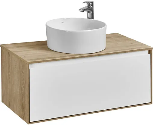 Тумба-умывальник подвесная Aquaton Либерти 90 дуб эльвезия/белый глянец 1A2799K2LYC70