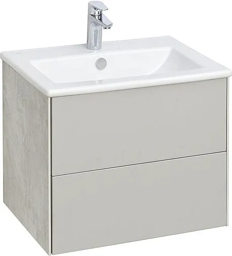 Тумба Сохо 60 функционально состоит из двух вместительных ящиков, оснащенных системой push to open, обеспечивающей надежное, комфортное и бесшумное закрывание. Фасады изделия выполнены из МДФ в пленке в цвете галька серая, корпус из ламинированной влагостойкой ДСП слэйт. Верхний и нижний ящики позволяют содержать косметические средства в идеальном порядке. Дополняет тумбу стильная раковина Элина от бренда Santek с удобной чашей. Все внутренние детали тумбы выполнены в цвете антрацит.