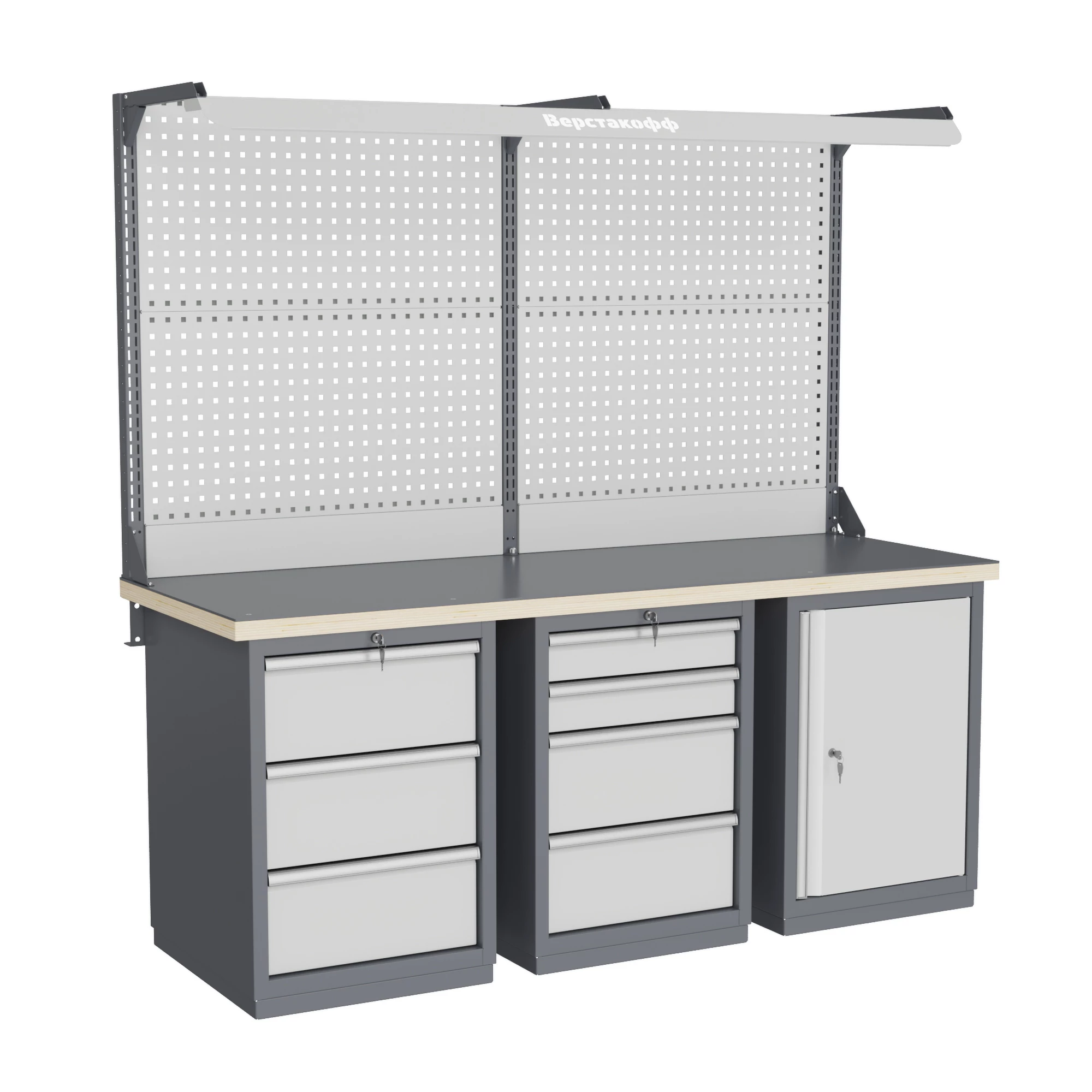 широкий выбор различных тумб позволяет получить более 50 различных вариантов верстаков и рабочих столов под любые задачи;