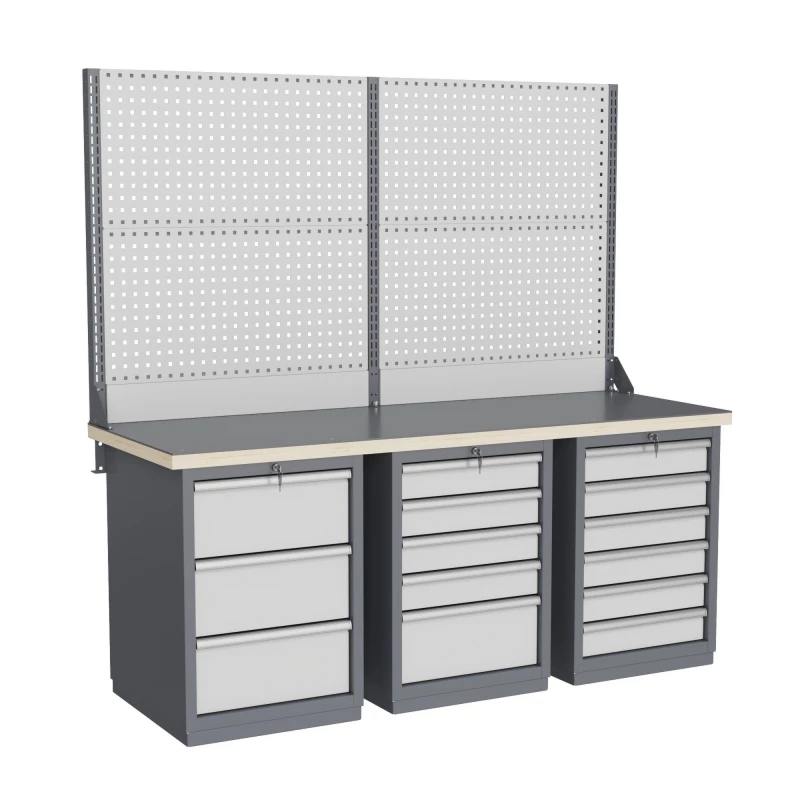 широкий выбор различных тумб позволяет получить более 50 различных вариантов верстаков и рабочих столов под любые задачи;