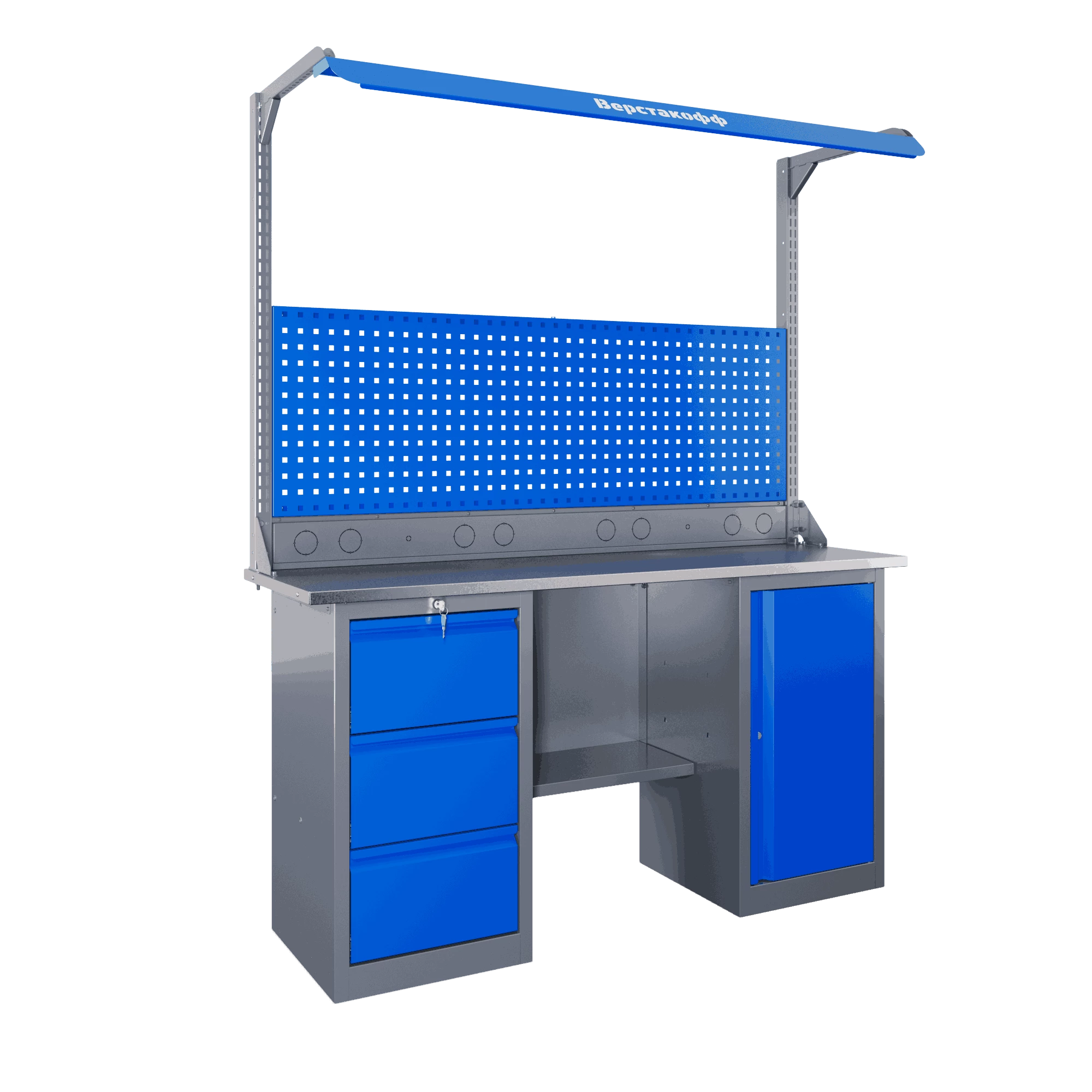 Самые компактные верстаки с глубиной столешницы 500 мм. Благодаря небольшой глубине, такие верстаки легко размещаются в ограниченных пространствах, например, в гаражах, мастерских и тд. Несмотря на компактные размеры, верстаки могут быть оснащены полками, ящиками и держателями для инструментов, что помогает поддерживать порядок и быстро находить нужные предметы.