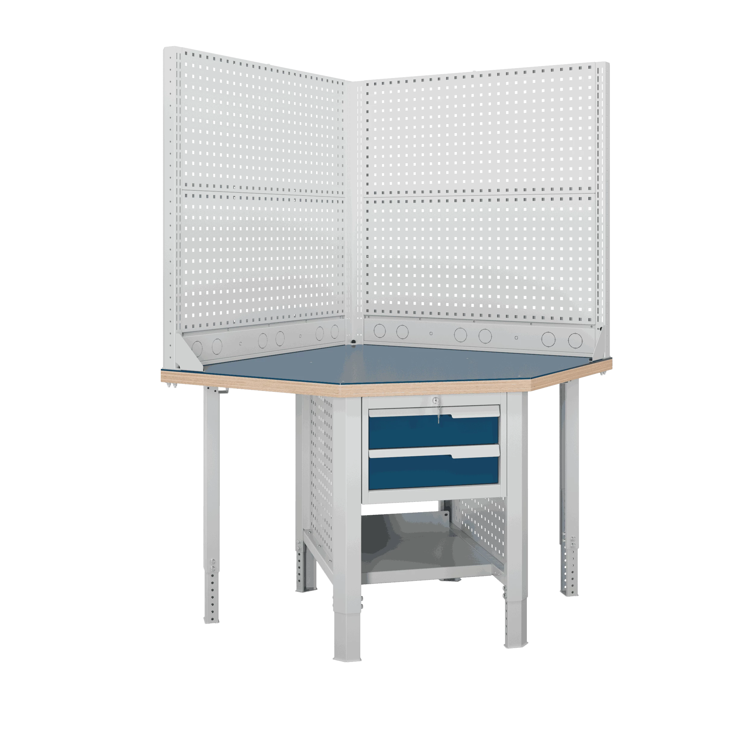 Блок стыковки углового верстака серии Constructor U5 разработан для обеспечения максимальной гибкости и надежности, учитывая конструктивные характеристики рабочего помещения.