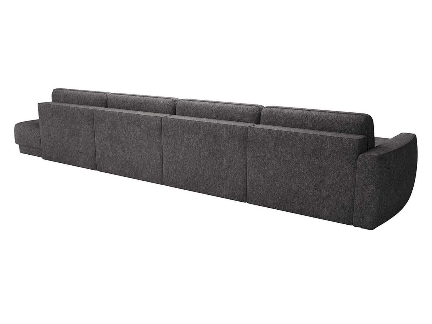 Диван имеет угловую П-образную конструкцию с дополнительным пуфом справа.