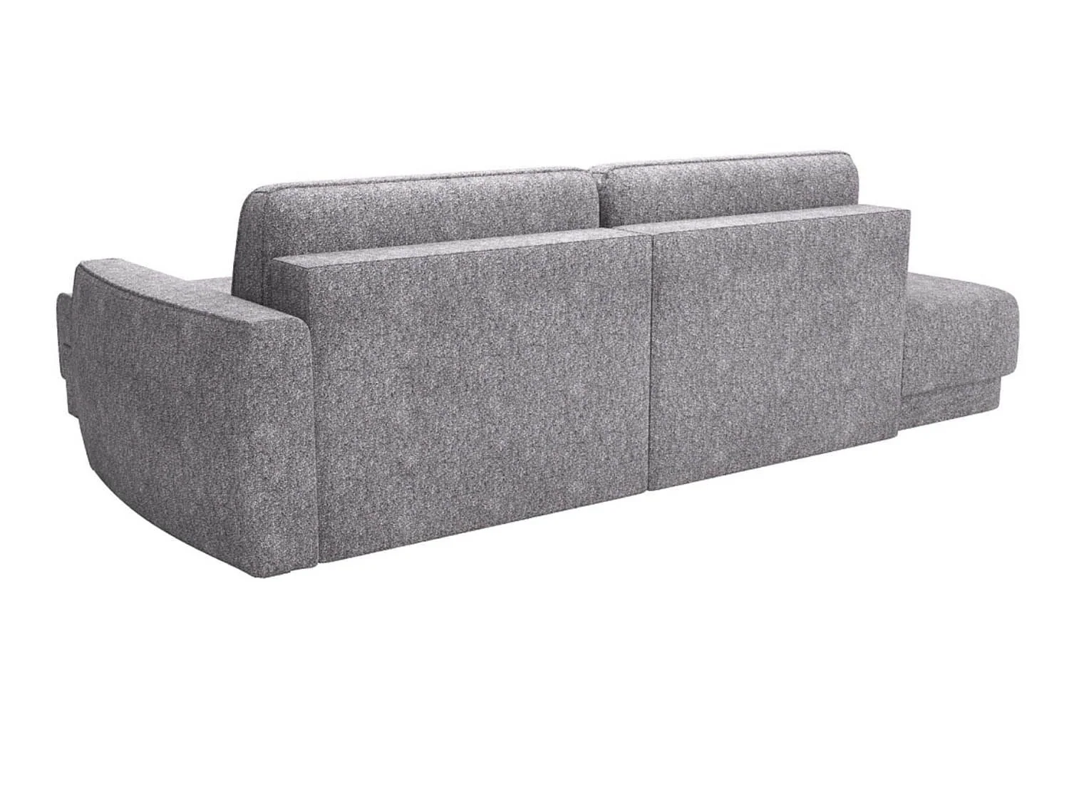 Особенность конструкции — угловая конфигурация и функциональный пуф с левой стороны.