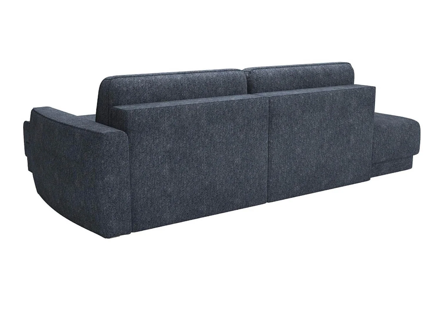 Особенность конструкции — угловая конфигурация и функциональный пуф с левой стороны.