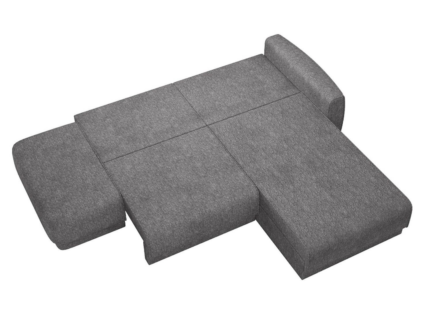 Особенность конструкции — угловая конфигурация и функциональный пуф с левой стороны.