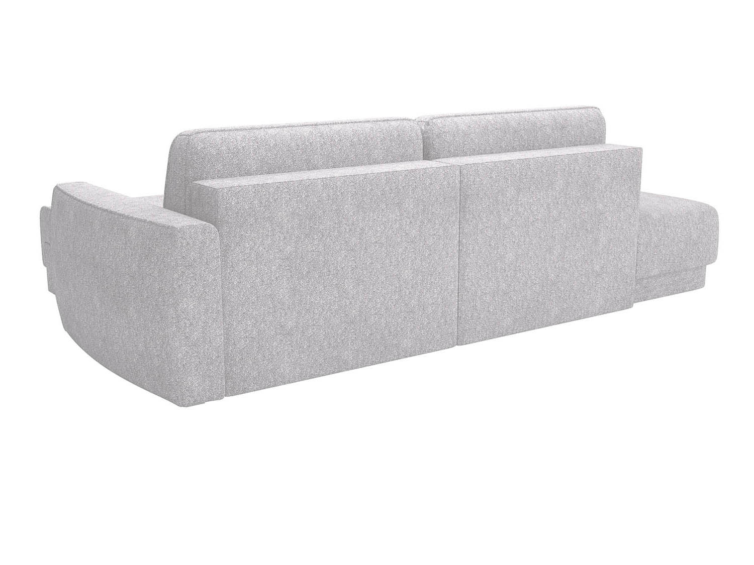 Особенность конструкции — угловая конфигурация и функциональный пуф с правой стороны.